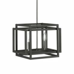 Clean rectangles in sanded black texture finish with polished nickel accents complete this 2 lt mini pendant. With 2-60 watt max candelabra sockets. Supplied with 15 feet wire, 3-12 inches stems, and 1-6 inches stems for adjustable installation.
