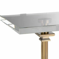 Streamlined with updated traditional style in mind, this petite drink table features a thick crystal top and coordinating accents on the base, finished in brushed brass plating.