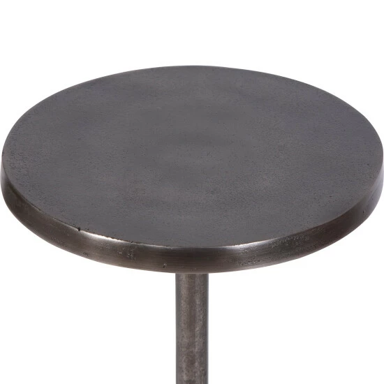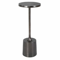 Minimalist in style with a chunky base, this solid aluminum drink table features a textured finish in antique gold and antique nickel.