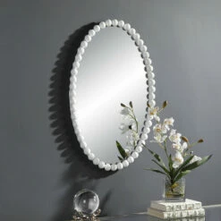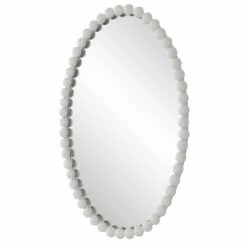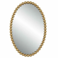 The Serna oval features an elegant curved iron frame with a beaded profile. May be hung horizontal or vertical.