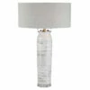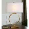 A cantilevered design and durable wood supports make this round drum shade lamp more durable than it may first appear. A solid black finish contrasts against the aged paper design of the shade for a transitional look that bridges the gap between modern and traditional. Just add your own 150-watt bulb to light up this round drum shade lamp.