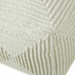 Handwoven from 100% wool in soft ivory, accented by subtle geometric inspired patterns. Perfectly oversized to use as a footrest or an extra place to sit.