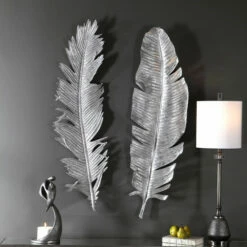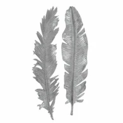 A whimsical set of 3-dimensional cast feathers in hand-applied bright metallic silver leaf.
