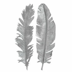 A whimsical set of 3-dimensional cast feathers in hand-applied bright metallic silver leaf.
