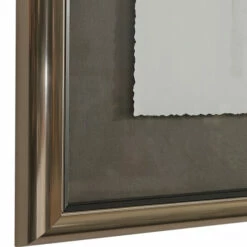 - Frame description: Clean silver frame with black inner lip, mat is soft dark grey