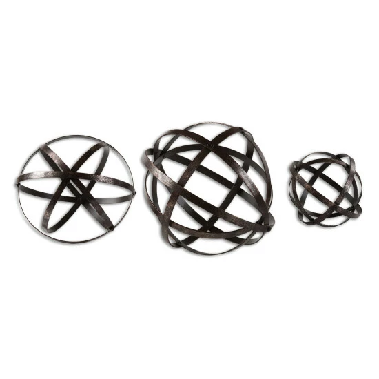 These decorative baubles are made of dark aged gun metal with silver undertones. Great for display in trays or balanced on their own.