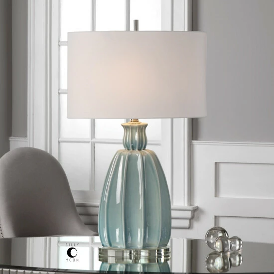 Uttermost’s Lamps Combine Premium Quality Materials With Unique High-style Design. With The Advanced Product Engineering And Packaging Reinforcement, Uttermost Maintains Some Of The Lowest Damage Rates In The Industry. Each Product Is Designed, Manufactured And Packaged With Shipping In Mind. Crackled Sky Blue Ceramic Featuring Gracefully Curved Ribbed Details With Plated Brushed Nickel Accents And A Thick Crystal Foot. The Oval Hardback Drum Shade Is A White Linen Fabric. Due To The Nature Of Fired Glazes On Ceramic Lamps, Finishes Will Vary Crackled Sky Blue Ceramic Featuring Gracefully Curved Ribbed Details With Plated Brushed Nickel Accents And A Thick Crystal Foot.