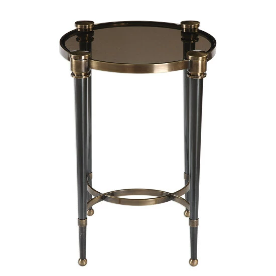 Uttermost’s Accent Tables Combine Premium Quality Materials With Unique High-style Design. With The Advanced Product Engineering And Packaging Reinforcement, Uttermost Maintains Some Of The Lowest Damage Rates In The Industry. Each Product Is Designed, Manufactured And Packaged With Shipping In Mind. Brushed Black Tapered Legs Are Accented With Brass Plated Details, Complete With A Black Glass Inset Top. Brushed Black Tapered Legs Are Accented With Brass Plated Details, Complete With A Black Glass Inset Top.