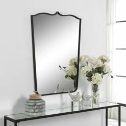 Handcrafted from solid iron, the tiara mirror showcases an elegant curved frame finished in satin black.