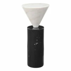A juxtaposition of modern shapes, this stylish drink table features solid marble in luxurious black and white. True to the nature of natural materials, each piece will have unique marbling and veining throughout.