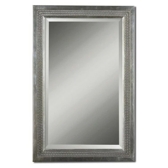 Brighten your foyer or den wall with this classic triple beaded vanity mirror. Featuring a beautiful silver-leaf finish, this beveled accent mirror is just right for making a small den feel larger, or you can hang it in your powder room as an elegant vanity mirror. This mirror comes ready to hang for fast, easy installation.