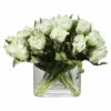 A staple across many design styles, this fiddle leaf fig branch is placed in a contemporary clear glass cylinder vase with natural stones and faux water.