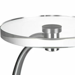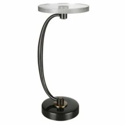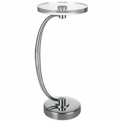 Minimal yet sophisticated, the waveney drink table displays a sleek curved base in polished plated iron with a thick crystal top.