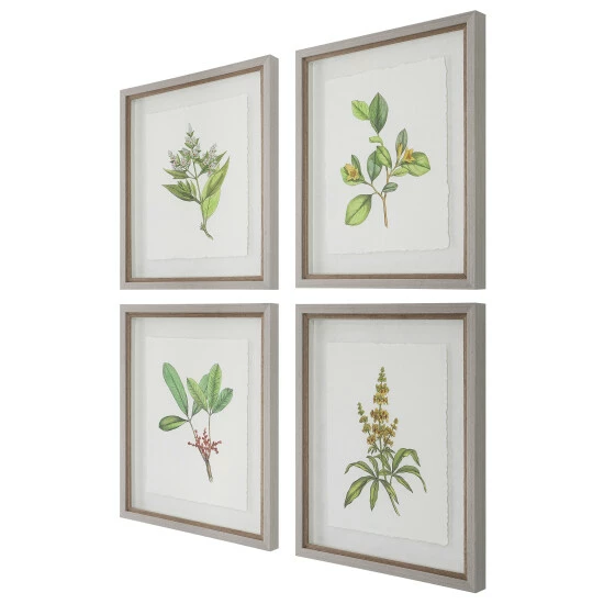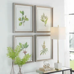 The Wildflower Study prints provide a touch of whimsy and femininity to your space. Each exclusive floral design is displayed on deckled edge textured art paper and framed shadowbox style in an aged light gray frame with a natural wood tone liner under glass.