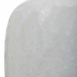 Simple yet versatile, this ceramic table lamp features a cream-ivory drip glaze with subtle texture, accented by brushed nickel plated details. The lamp is paired with a light grey linen fabric drum shade.